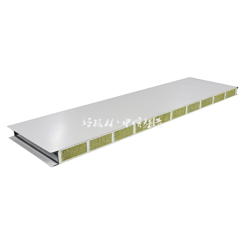 玻镁岩棉夹芯板适用于对防火有较高要求的工程。岩棉纤维垂直于金属面板,高密度条状 岩棉沿板长方向交错布置,保证了玻镁岩棉夹芯板具有良好的承载能力。岩棉芯材为A1级非燃 烧材料,故玻镁岩棉夹芯板具有超过1000度的耐火能力。50mm厚的防火时间为74分钟。
